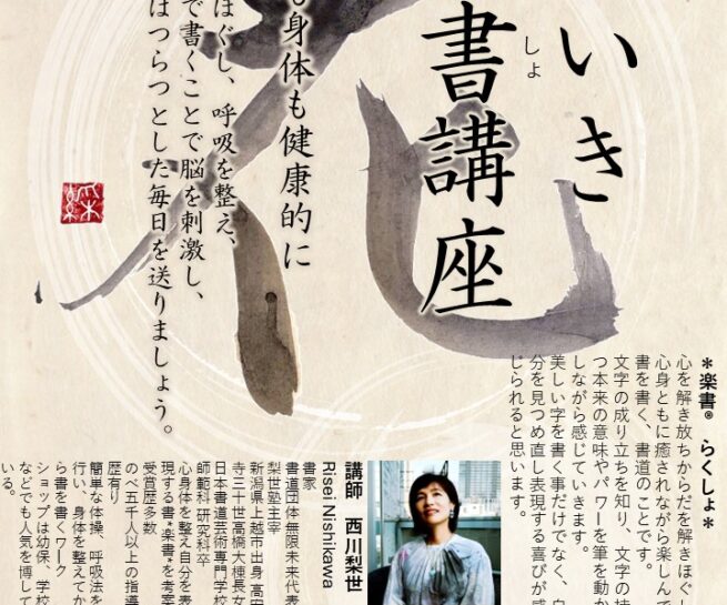 4月より書道の新講座「いきいき楽書(らくしょ)講座」が はじまります。