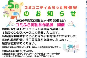 平素よりコミュニティふらっと阿佐谷をご利用いただき誠にありがとうございます。 毎月館内にて配布しております「コミュニティふらっと阿佐谷のお知らせ」がホームページでもご覧いただける様になりました。スケジュールの確認などに是…