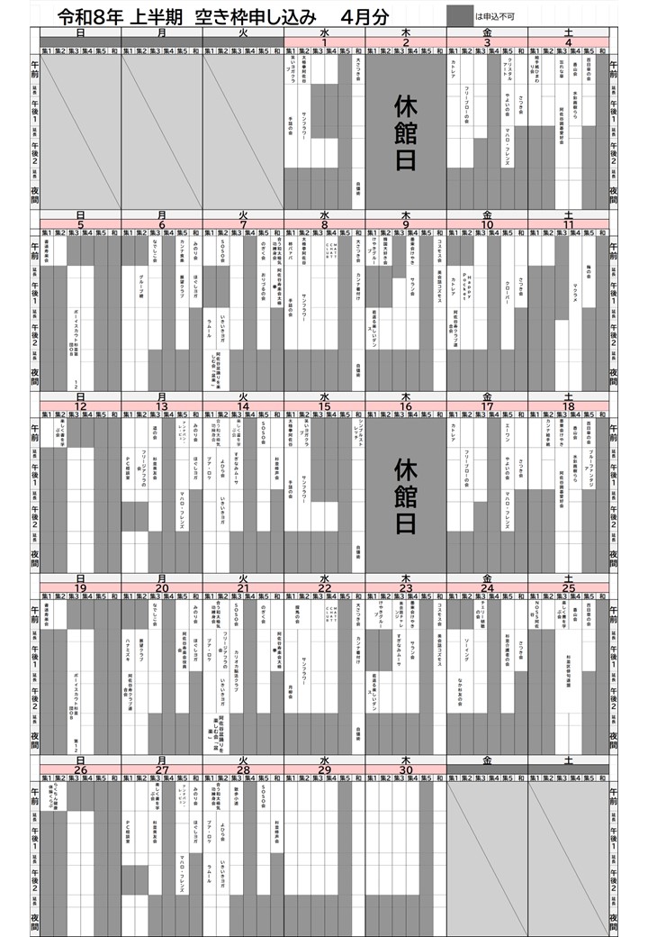 使用申請は令和8年1月5日(月)午後1時30分~1月13日(火)午後8時まで。