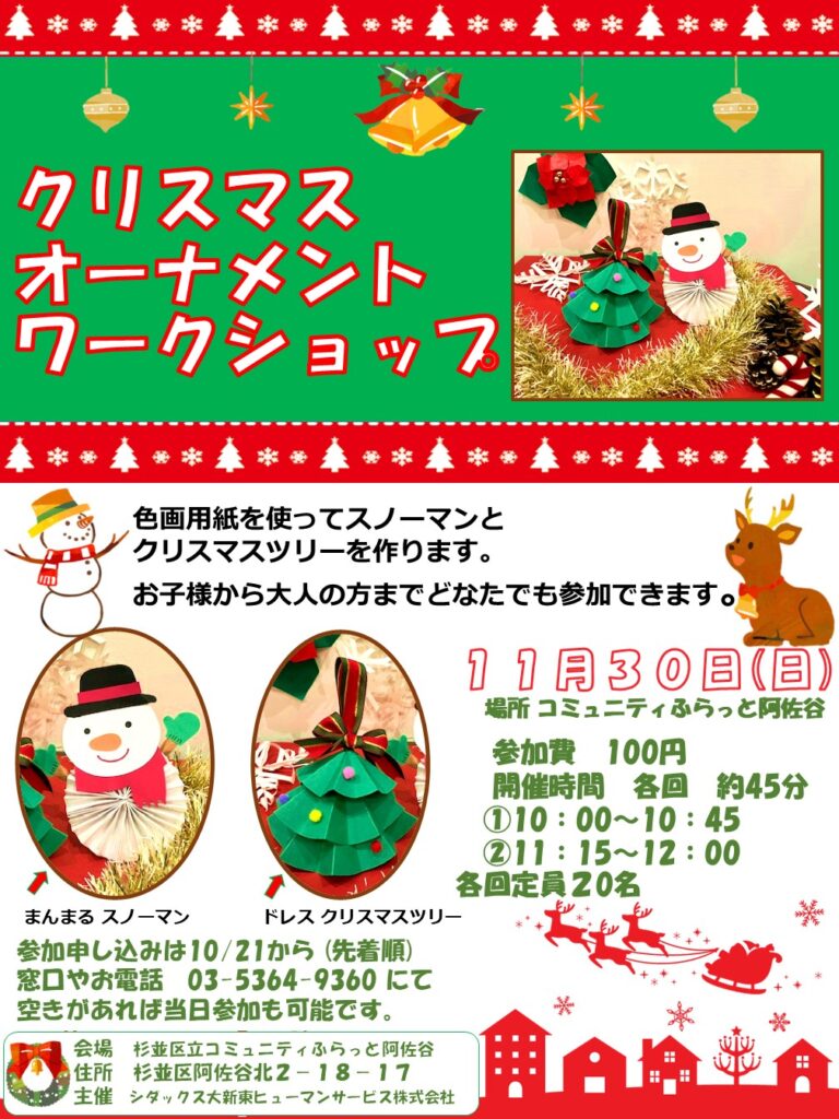 11/30(日) クリスマス ワークショップの開催のお知らせ