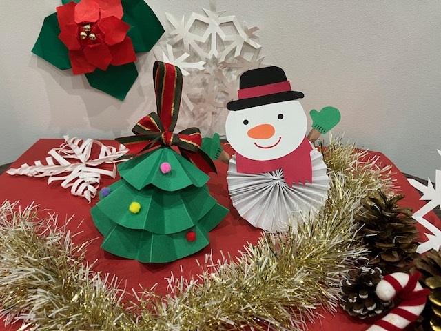 今年は画用紙で、まんまるスノーマンとドレスクリスマスツリーを作ります。