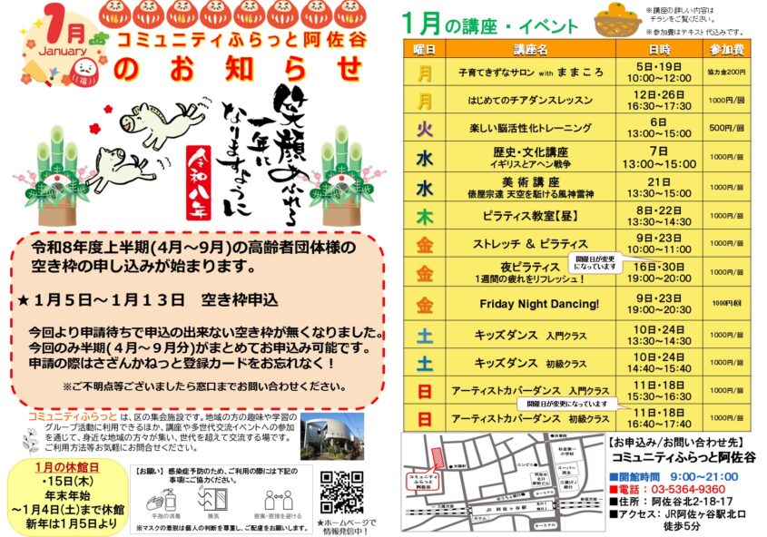 平素よりコミュニティふらっと阿佐谷をご利用いただき誠にありがとう…